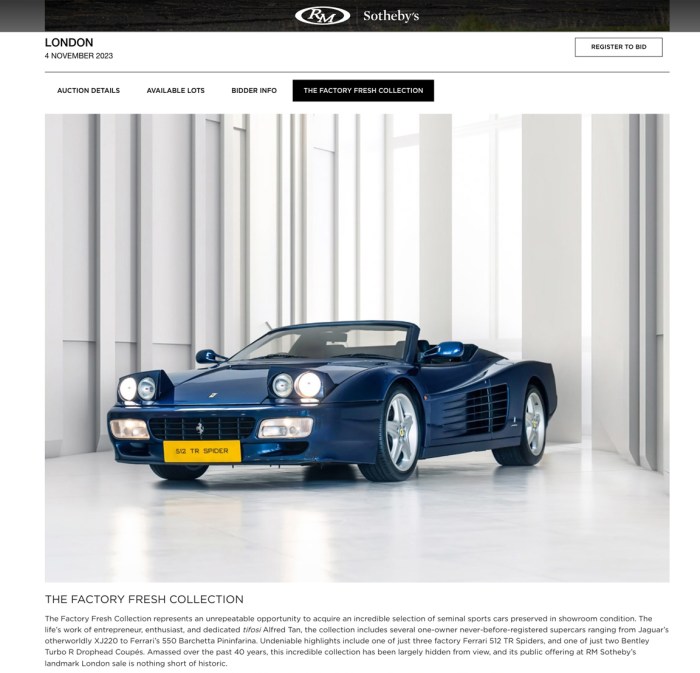 Cover photo for LONDON’S FACTORY FRESH COLLECTION and MONACO’s Grimaldi Forum auction. All cars shot in the constraints of location, time and limited movement due to bonding with Singapore’s warehouse address.