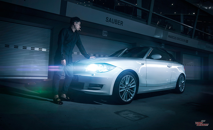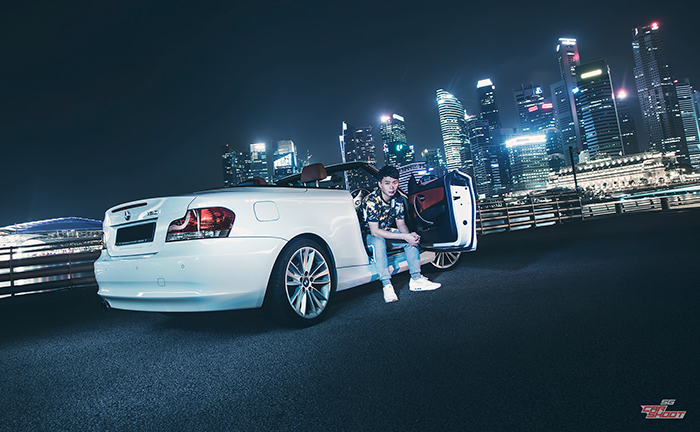 Small rear wheel driven drop-tops are a rare sight in Singapore and this is Sherman, proudly posing with his prized possession of the BMW 120i convertible. The choice of car probably reflects his personality – a little understated but knows when to let go and have fun when the party’s on. Warming up to the shoot, posing for the camera with little antics was a total natural to him. Male model for fashion photography, anyone?