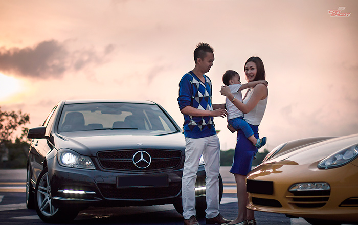 This is Keith and Sheena, and they are a young family of two cars. Just kidding. They have a two year old tot (name withheld to protect the innocent) and he is in his cutest stage of life. The gleaming yellow Porsche Boxster is the fun ride for the family of three while the black suave Mercedes C200 is the family car.