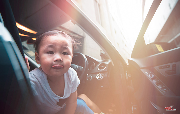 It is never easy to warm up a toddler for an early morning shoot – which explains his glum look in the photo above – and this is when the Porsche comes in handy. A few quick spins and the smiles were back on his face. With that settled, we are blessed for another beautiful morning with an equally awesome sunrise for our family car shoot. Enjoy.