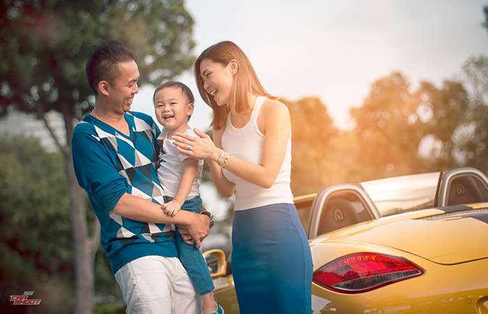 It is never easy to warm up a toddler for an early morning shoot – which explains his glum look in the photo above – and this is when the Porsche comes in handy. A few quick spins and the smiles were back on his face. With that settled, we are blessed for another beautiful morning with an equally awesome sunrise for our family car shoot. Enjoy.