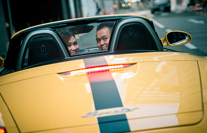 This is Keith and Sheena, and they are a young family of two cars. Just kidding. They have a two year old tot (name withheld to protect the innocent) and he is in his cutest stage of life. The gleaming yellow Porsche Boxster is the fun ride for the family of three while the black suave Mercedes C200 is the family car.