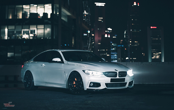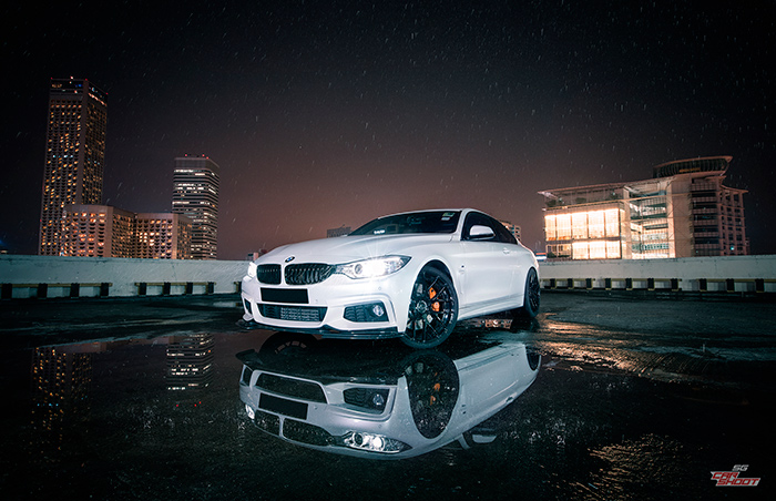 We check out Alex’s BMW 435i coupe that has been fitted with a full suite of goodies from the M Performance parts and Monster Tuned to 330 horses. From carbon fibre splitter and duck tail spoiler, blacked-out grille to 20″ ADV.1 rims and Eisenmann race quad exhaust, the list is quite exhaustive. The heavy rain before the shoot didn’t dampen our moods because it created a very interesting canvas for us to play on. Water reflection ratchets up the drama of the shots and we were pretty pleased with the end result.