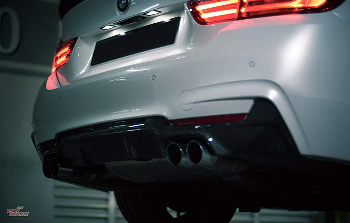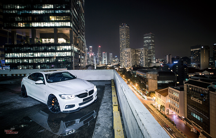 We check out Alex’s BMW 435i coupe that has been fitted with a full suite of goodies from the M Performance parts and Monster Tuned to 330 horses. From carbon fibre splitter and duck tail spoiler, blacked-out grille to 20″ ADV.1 rims and Eisenmann race quad exhaust, the list is quite exhaustive. The heavy rain before the shoot didn’t dampen our moods because it created a very interesting canvas for us to play on. Water reflection ratchets up the drama of the shots and we were pretty pleased with the end result.