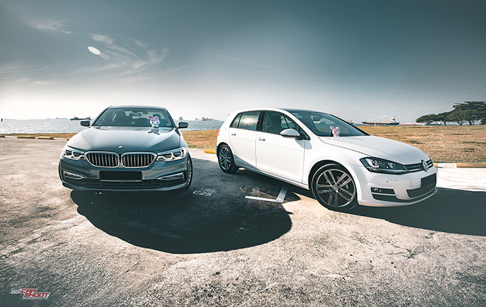 This is about two lovebirds celebrating a decade of togetherness, and also as car lovers, a perfect excuse for them to have a photo session with their shimmering rides. Featuring the all new 2018 BMW 530i luxury saloon and the ever versatile Volkswagen Golf 1.4 TSI hatchback.
