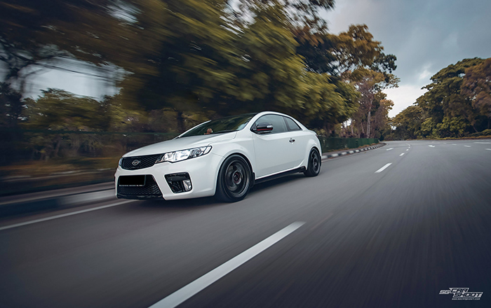 This is one of the KIA marques that changed the fortunes of the Korean automotive company. Spearheaded by then chief designer Peter Schreyer, he introduced the signature tiger grille to all KIA models and body sculpted them to perfection. The KIA Cerato Koup has come of age but her design still holds much relevance in today’s market. To up her street creds, we took this particular pearl white ride on aftermarket kits and rims out for a morning shoot in the CBD and boy, we were not disappointed.