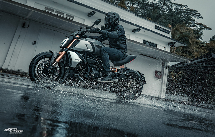 A comprehensive shoot for this 2019 Ducati Diavel 1260 S superbike. This is only our third motorbike shoot done in as many years and we are loving how the photos turned out. The day started out with an overcast sky and the rain clouds eventually caught up with us… but it didn’t rain on our parade, how apt. “We made lemonade out of lemons” as quoted by the owner.